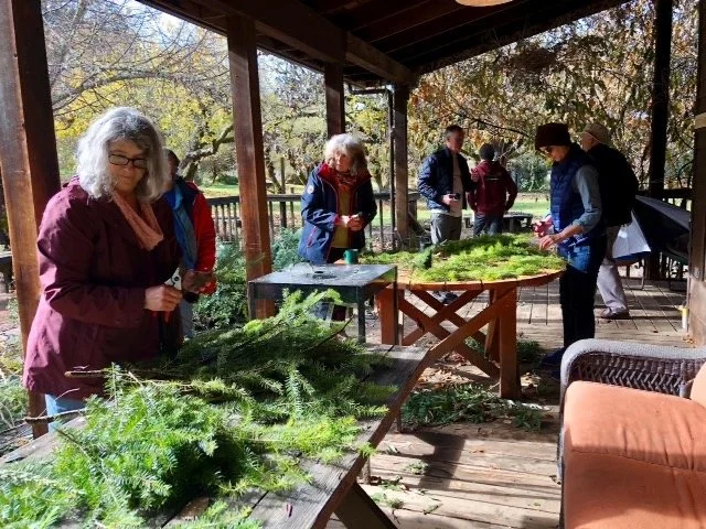 Join us on Saturday, November 29, 2025, for Wreath Making and Pizza, 10 am until 4 pm! We collect greens from all over the county prior to Saturday, but can always use more. If you have things in your yard that would look good in a wreath, do bring them along. And please bring pruning shears!